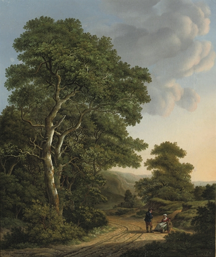 Travellers resting in a wooded landscape signed and dated ‘A. Serné, 1818’ (lower right) oil on canvas 53.5 x 45 cm. Price realised EUR 2,250 (10 Sep 2008) Bron: https://www.christies.com/en/lot/lot-5110461 “Reizigers in een boslandschap” (1818)[Bosgezicht – Bospad – Persoon/Personen] [Olieverf op doek] [54 x 45 cm.(hxb)] (Werk-nr: 3126)Bron afbeelding: Christies geveild september 2008 2250 euro