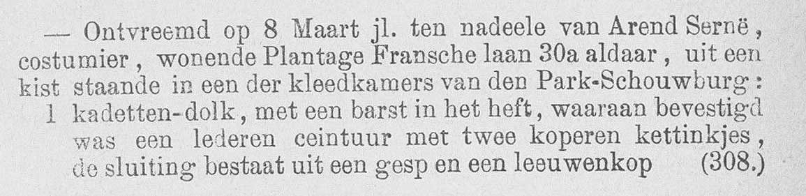 Gestolen uit de kleedkamers van A, Serné & Zoon