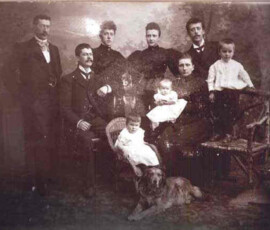 van links naar rechts (staand): Hendrik Serné, Nathalie Huberta Smit, Maria Johanna Serné en Leonardus Cornelis Smit van links naar rechts (zittend): Wilhelmus Gerardus Serné en Maria Cornelia de Jong van links naar rechts (de kinderen): Maria Johanna Serné, Johanna Maria Elisabeth Serné en Hendrik Willem Serné
