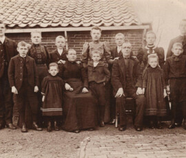 Van links naar rechts vooraan Klaas, Alida Elizabeth (Alie), Antje, Hendrik (Henk), Klaas (sr), Ans en Gerardus (Gerard). Van links naar rechts achteraan Gerrit, Jannetje (Jans), Piet, Maria (Mia), Willem, Dirkje (Ditje) en Burret (of Bart)