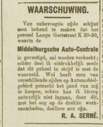 Kunst-Atelier W. Serné uit Amsterdam, in de Middelburgsche Courant (17-11-1917)