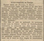 DeTijd Godsdienstig Staatkundig Dagblad (1913-03-08). Artikel over het auto ongeluk in Parijs, waarbij kandidaat-notaris B.M. Serné was betrokken.